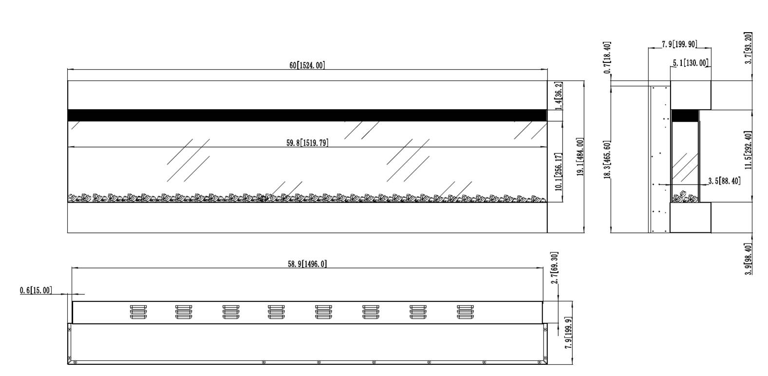 British Fires New Forest 1600 sähkötakka. 1-lasi, 2-lasi tai 3-lasinen malli. Asennetaan takkakuoren sisään kuten kuvassa. Mitat: K565xL1600xS300 mm. Säädettävä 3D liekki ja hiillos. Lämmitysteho 1500W. Kaukosäädin. Ajastin. Jännite 220-240V 50 Hz. Paino 85 kg. CE-merkitty.