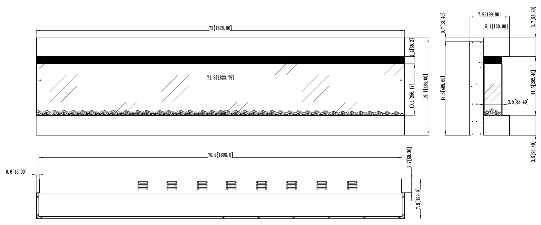 British Fires New Forest 870 sähkötakka. 1-lasi, 2-lasi tai 3-lasinen malli. Asennetaan takkakuoren sisään kuten kuvassa. Mitat: K465xL870xS300 mm. Säädettävä 3D liekki ja hiillos. Lämmitysteho 1500W. Kaukosäädin. Ajastin. Jännite 220-240V 50 Hz. Paino 33 kg. CE-merkitty.